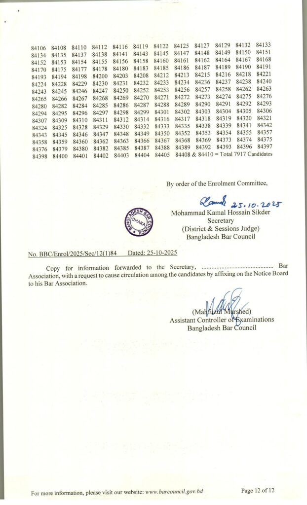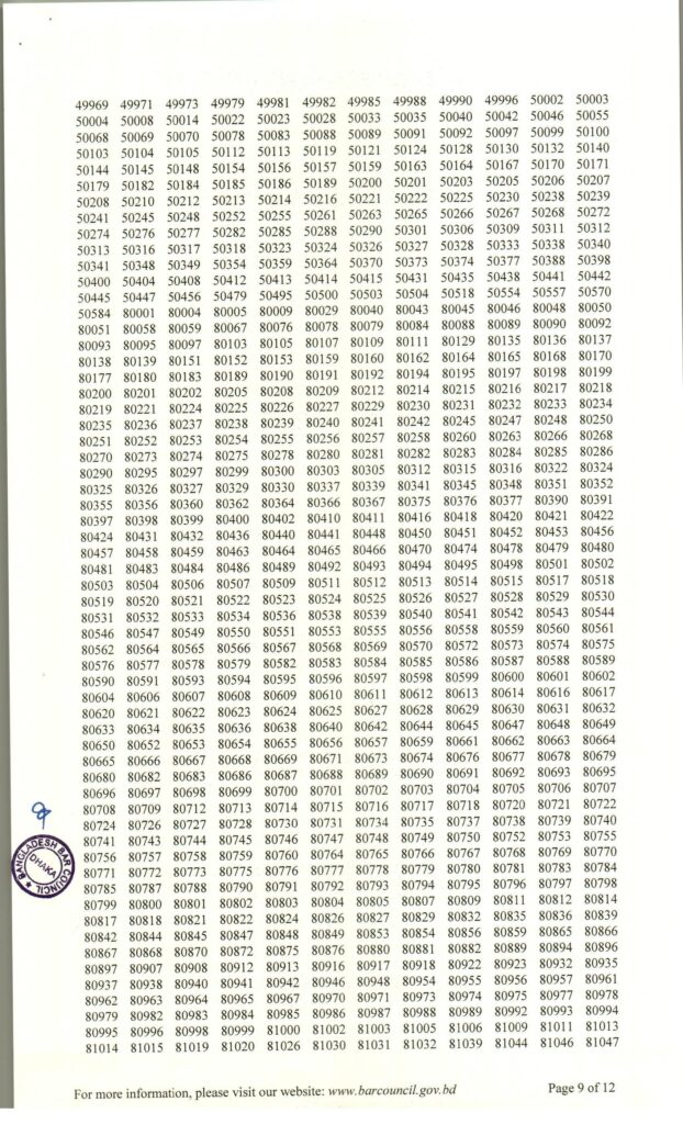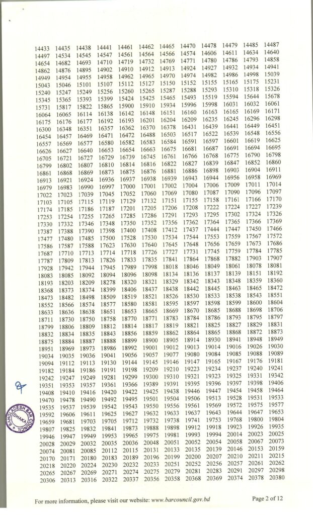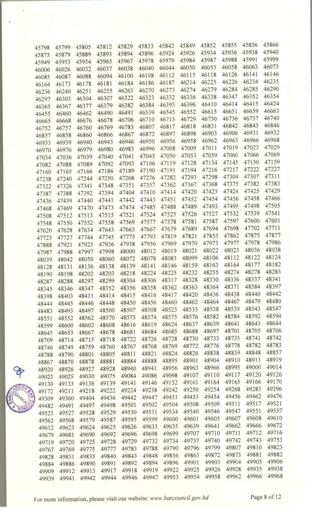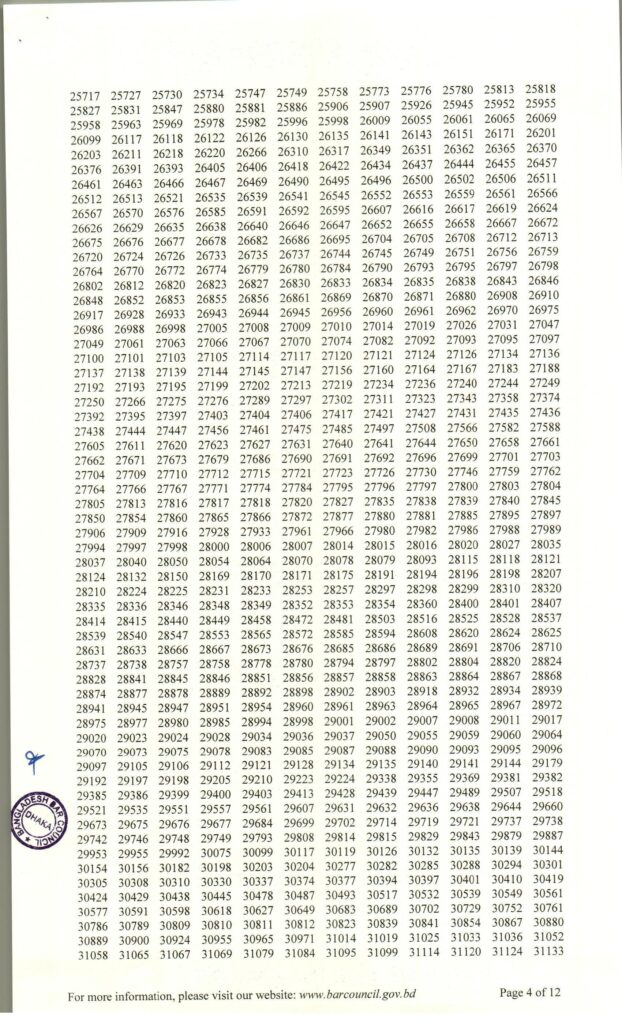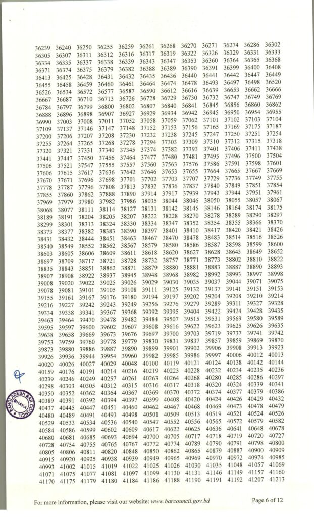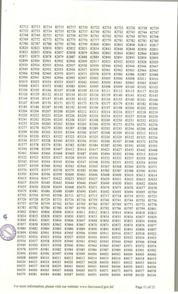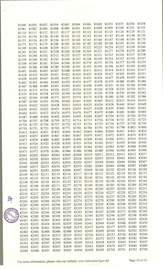 A total of 13,258 candidates appeared in the written test with hopes of qualifying for the final stage, the Viva-Voce (Oral Test), which is the last step before becoming an enrolled advocate in lower court under the Bangladesh Bar Council. Out of them, only 7917 candidates have been selected for the viva test.