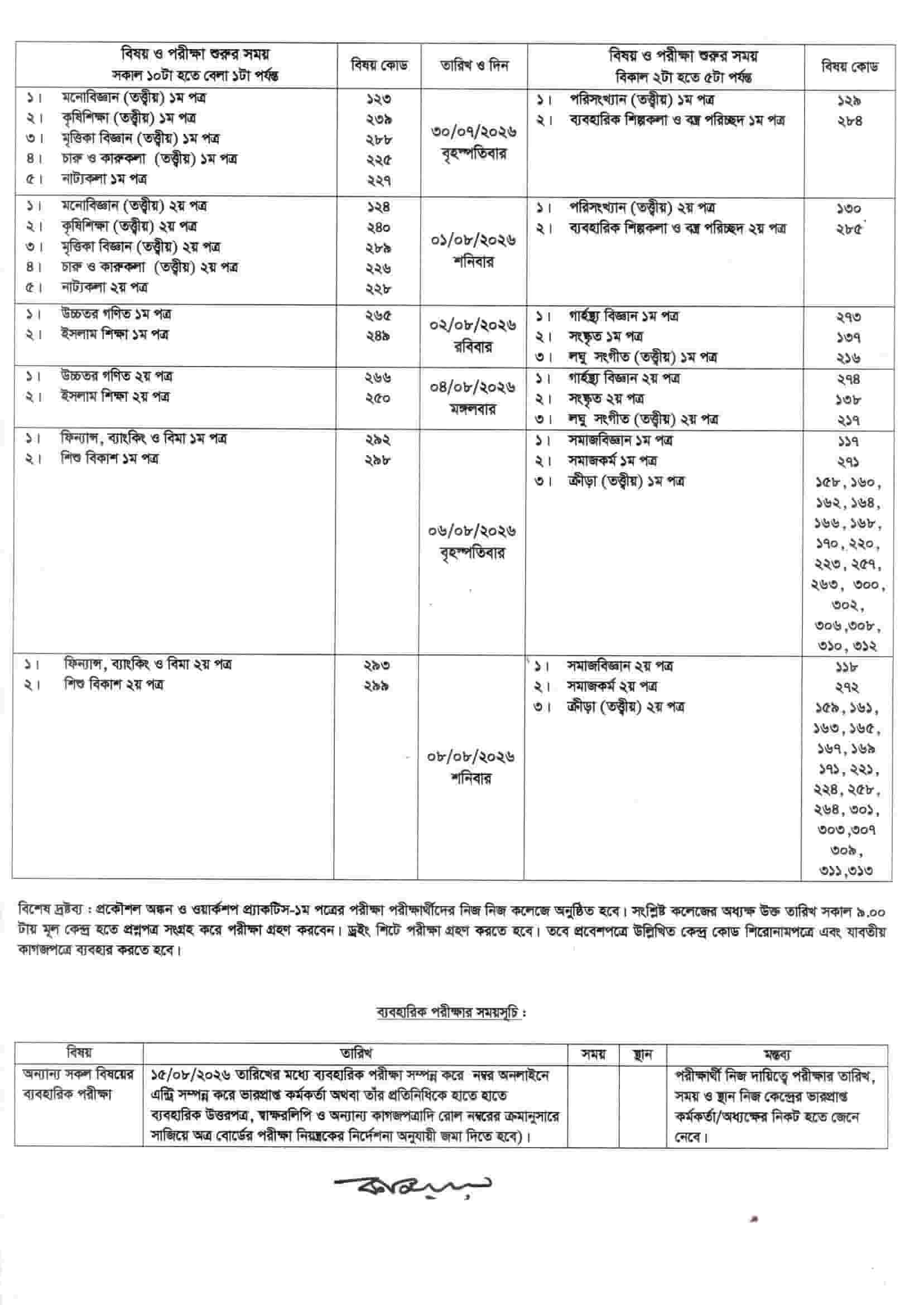 But after completing the HSC theoretical exam the HSC practical exam will begin on August 15, 2026. This HSC and Equivalent Examination Schedule will be maintained for all the education boards in Bangladesh.